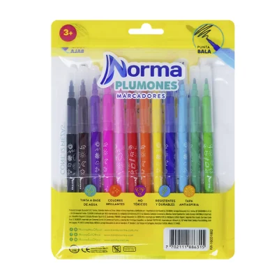 Plumones Lavables Punta Bala X12 – Norma