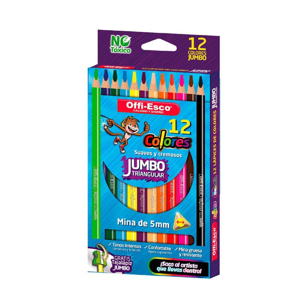 Colores Offiesco JUMBO Triangulares 12 Unds. Unicolor OE-144