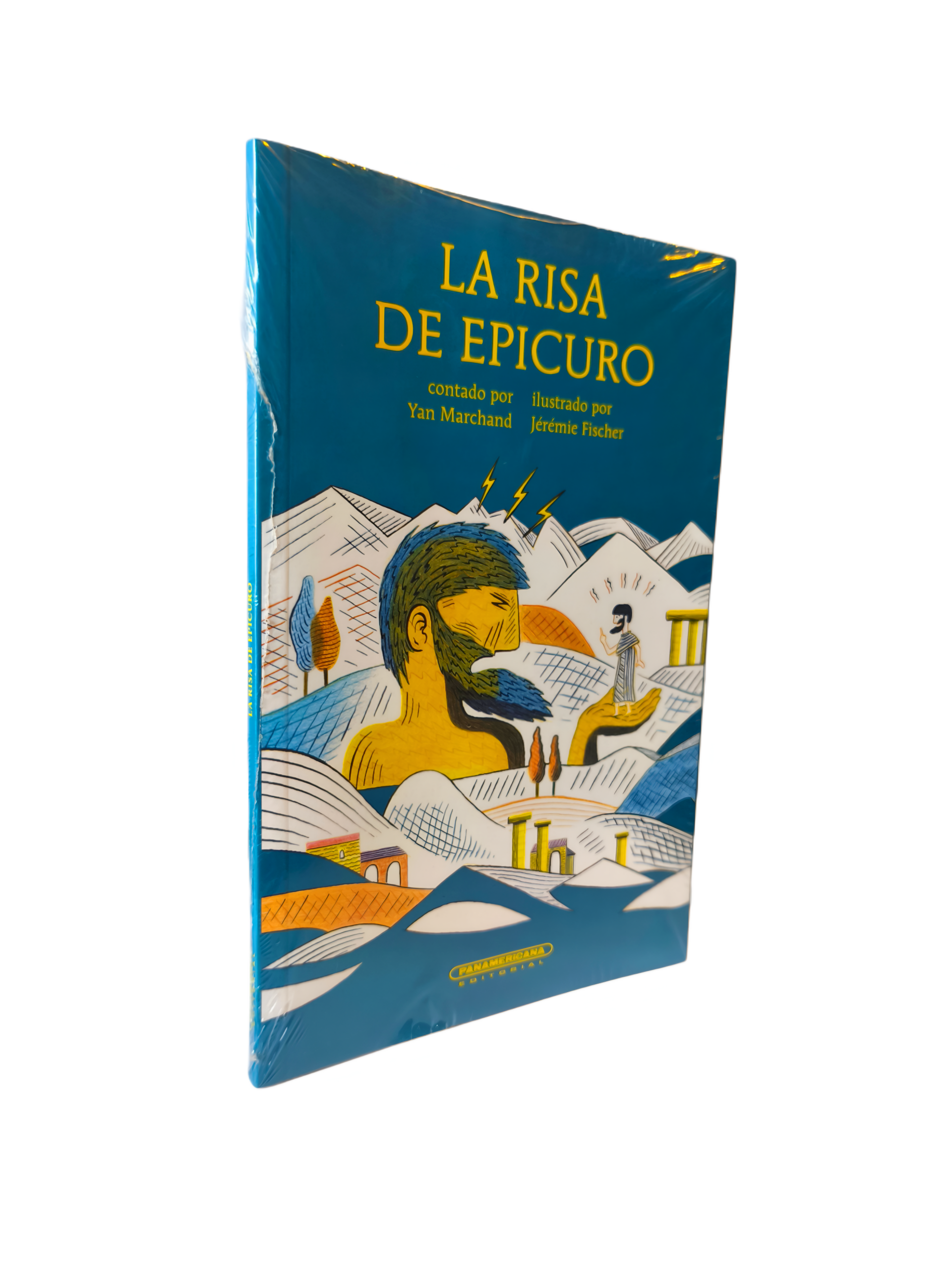 El trabajo de Jérémie Fischer destaca por un estilo contemporáneo, con colores vibrantes y formas geométricas que dan una energía fresca y moderna a una historia que tiene más de dos mil años. En la portada se observa un contraste interesante entre la figura de un gigante (que podría representar el caos o los temores) y la figura serena y pequeña de Epicuro, simbolizando el poder del pensamiento sobre la fuerza bruta.